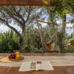 At your complete disposal, the elegant living room with direct access to the patio and a comfortable sofa bed; the well-equipped kitchen will ensure maximum independence, while the bright and comfortable master bedroom will allow you to rest and start each day in the best way. You can then take advantage of the splendid outdoor spaces, the patio with a table and a very comfortable hammock to rest during the hottest afternoons, and the large pool with a panoramic view of San Gimignano and the surrounding countryside, shared with the other two cottages around the garden.