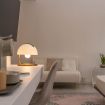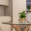 The living area includes a fully equipped kitchen, a dining table for four, and a cozy sitting corner perfect for breakfast, a good coffee, or an evening chatter.