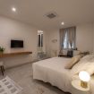 The interiors, inspired by the colors and scents of the Mediterranean, combine discreet elegance with maximum comfort. The four double bedrooms, each with a private bathroom, offer bright and relaxing spaces, reflecting the shades of the sea, sand, and coastal sunsets.