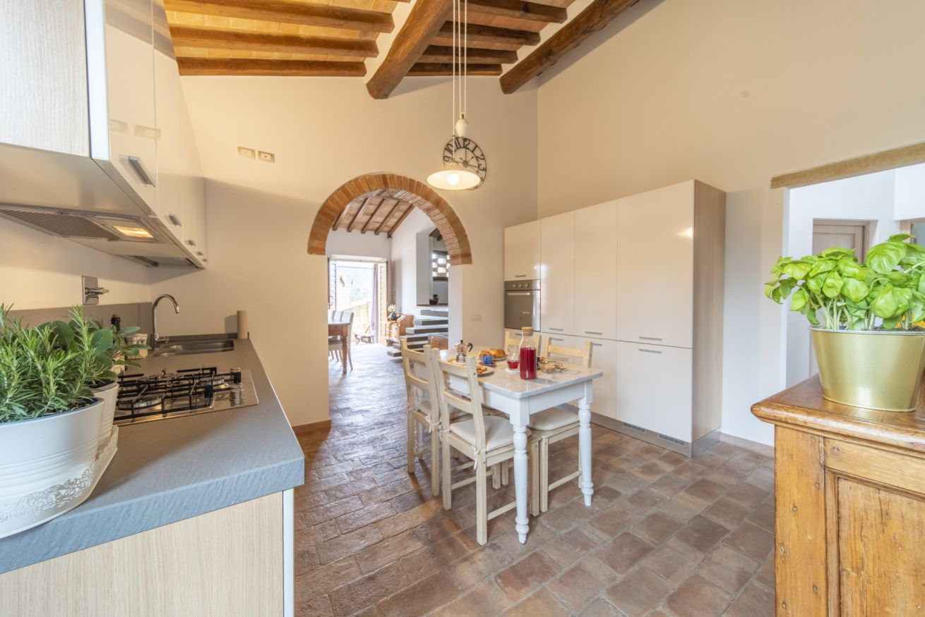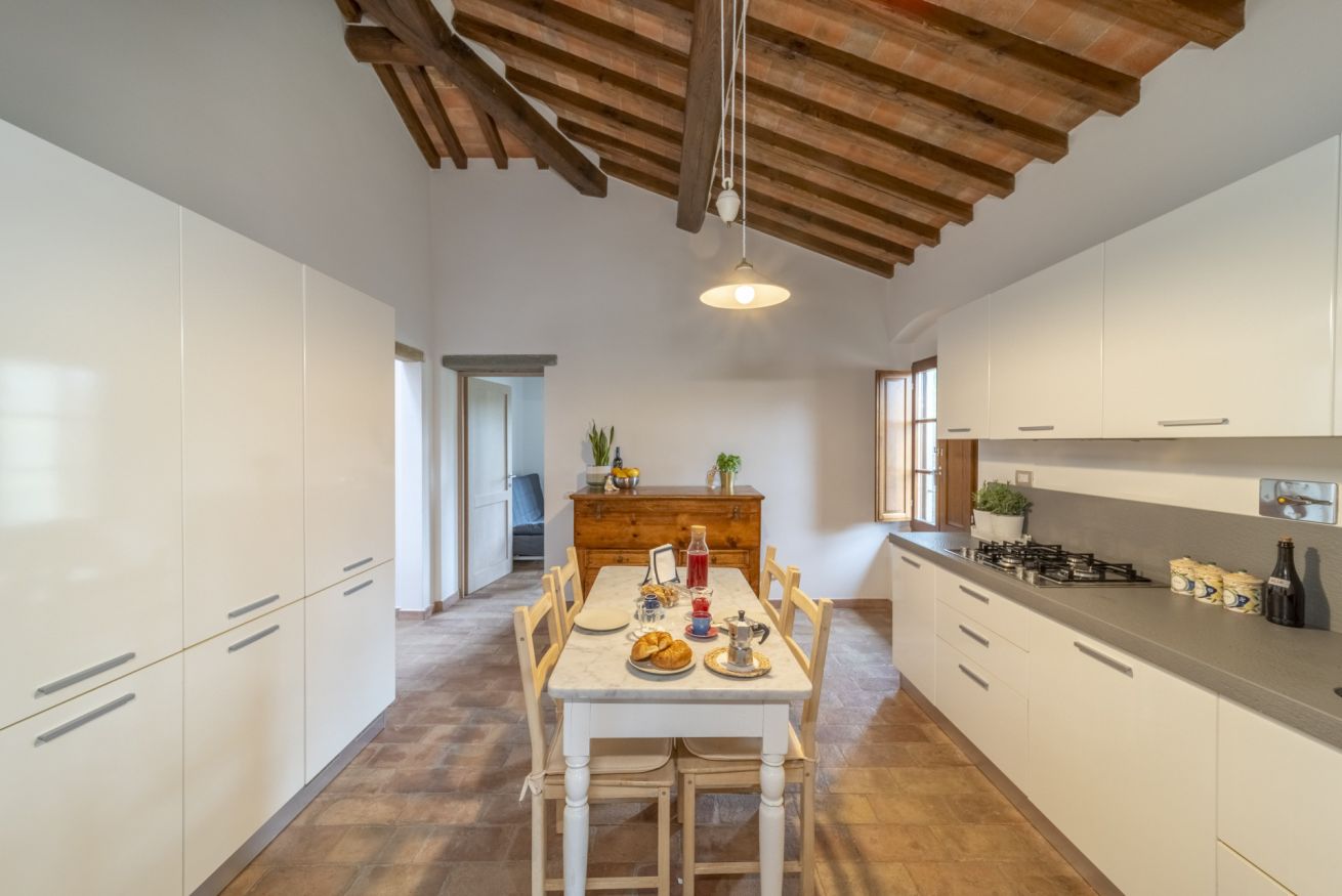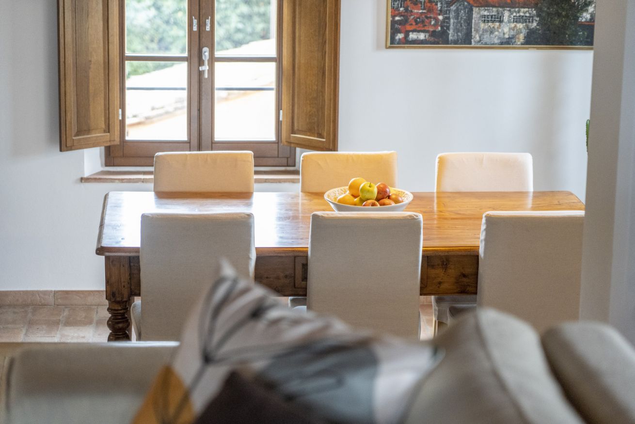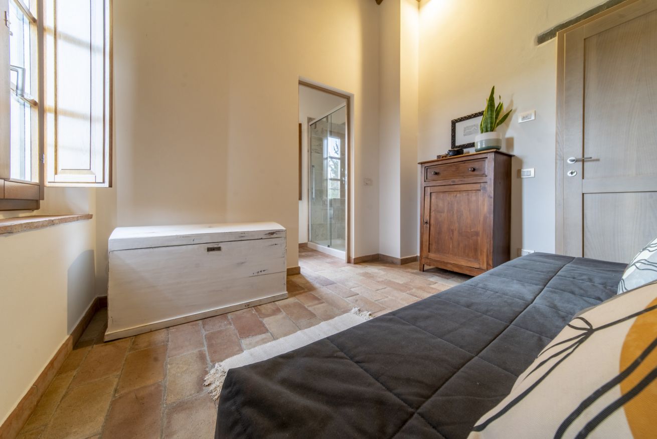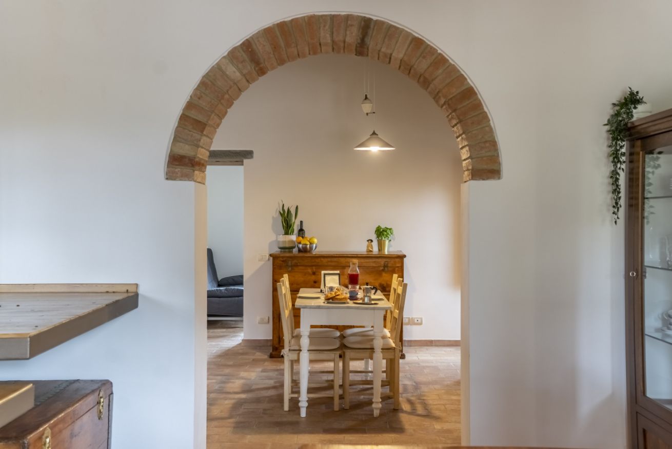 Upon your arrival, you will be greeted by an entrance that opens into the dining room, an ideal space for sharing meals together. From the dining room, you have access to a fully equipped kitchen where you can indulge in preparing Tuscan delicacies. The living room, furnished with a large and comfortable sofa, invites you to relax after a day of exploration. The house features three cozy bedrooms, each with its own unique character, ensuring you a restful night's sleep. Additionally, there are two modern and fully equipped bathrooms for your comfort.