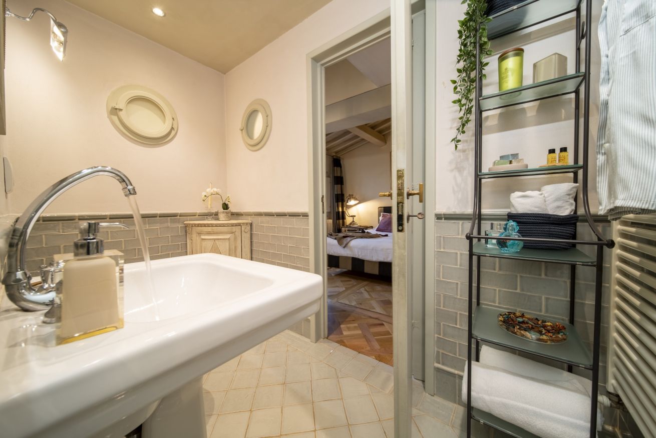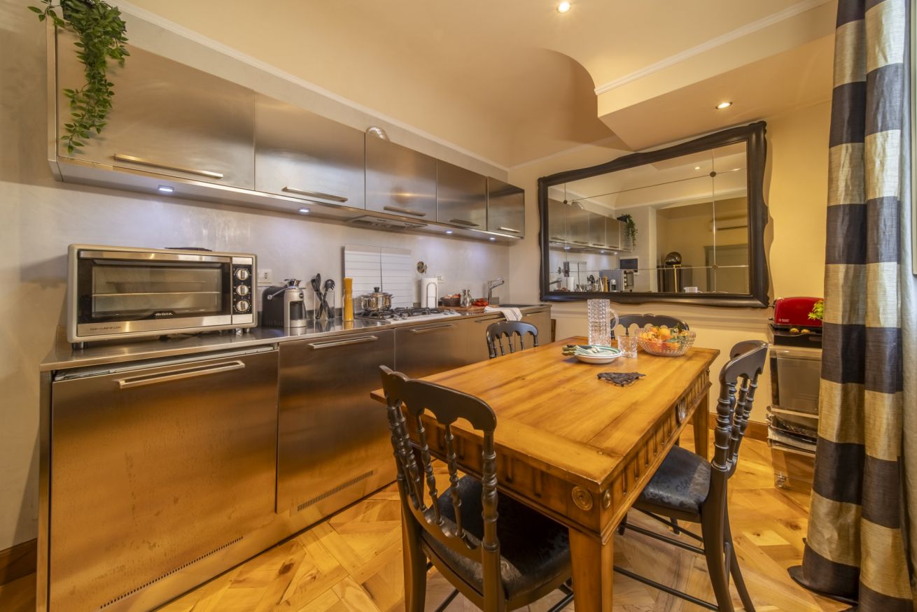 Finemente arredato e con tutte le comodità, questo elegante bilocale nell'attico di un antico palazzo signorile vi renderà protagonisti della vostra vacanza fiorentina. Potrete rilassarvi nel raffinato salottino dopo lunge giornate a passeggio per il centro, sbizzarrirvi nella cucina grazie all'angolo cottura moderno e sapientemente attrezzato, e in fine riposare nell'elegante camera da letto matrimoniale.