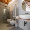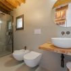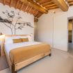 The renovation preserved the original shapes and materials of the building, creating private and comfortable spaces filled with the atmosphere of traditional Tuscan homes, with wooden furniture, brick details, and exposed beams.