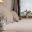 The house includes two double bedrooms, each with a private bathroom and walk-in shower. The first bedroom also features an elegant sitting area, while the second offers a comfortable reading or working spot with a direct view of the surrounding countryside.