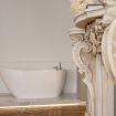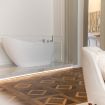 Adding to the charm of the space is a freestanding bathtub, placed in a special spot: a scenic detail that invites you to take your time, surrounded by calm and light. Also in the room is a private bathroom, elegant and minimal, with a large shower for maximum comfort and just the right amount of privacy.