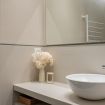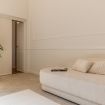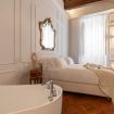 What makes this room truly special is the elegant freestanding bathtub, placed in the opposite corner of the room: an unexpected detail, bold in its refinement, adding a touch of aristocratic charm without losing grace.