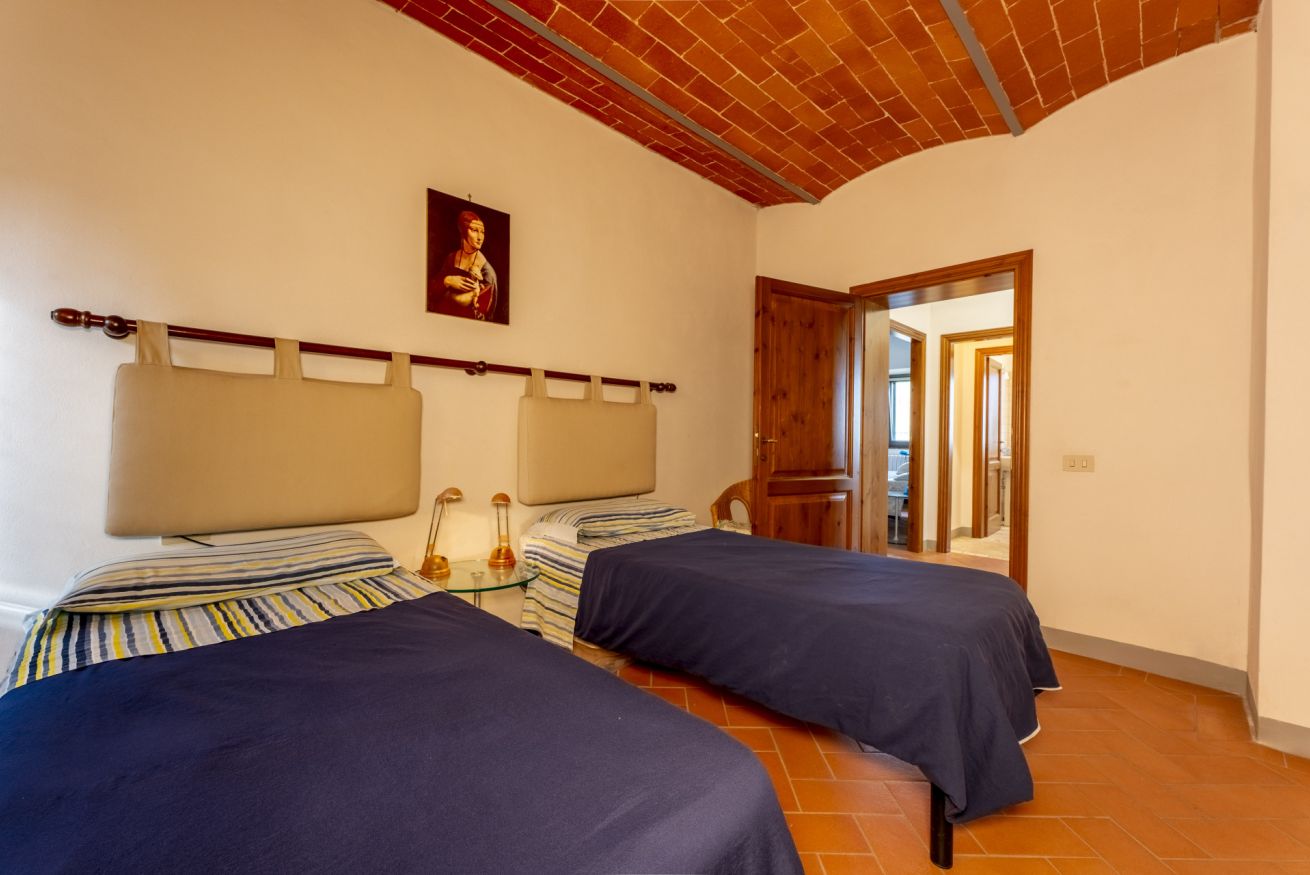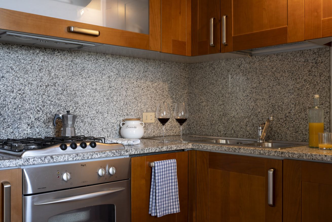 This apartment, designed to accommodate families with children thanks to the master bedroom and the second bedroom with two single beds, will allow you not only to fully enjoy the shared outdoor spaces with other guests but also to spend time in the privacy of your living room, with a convenient kitchenette at your disposal and the dining area.