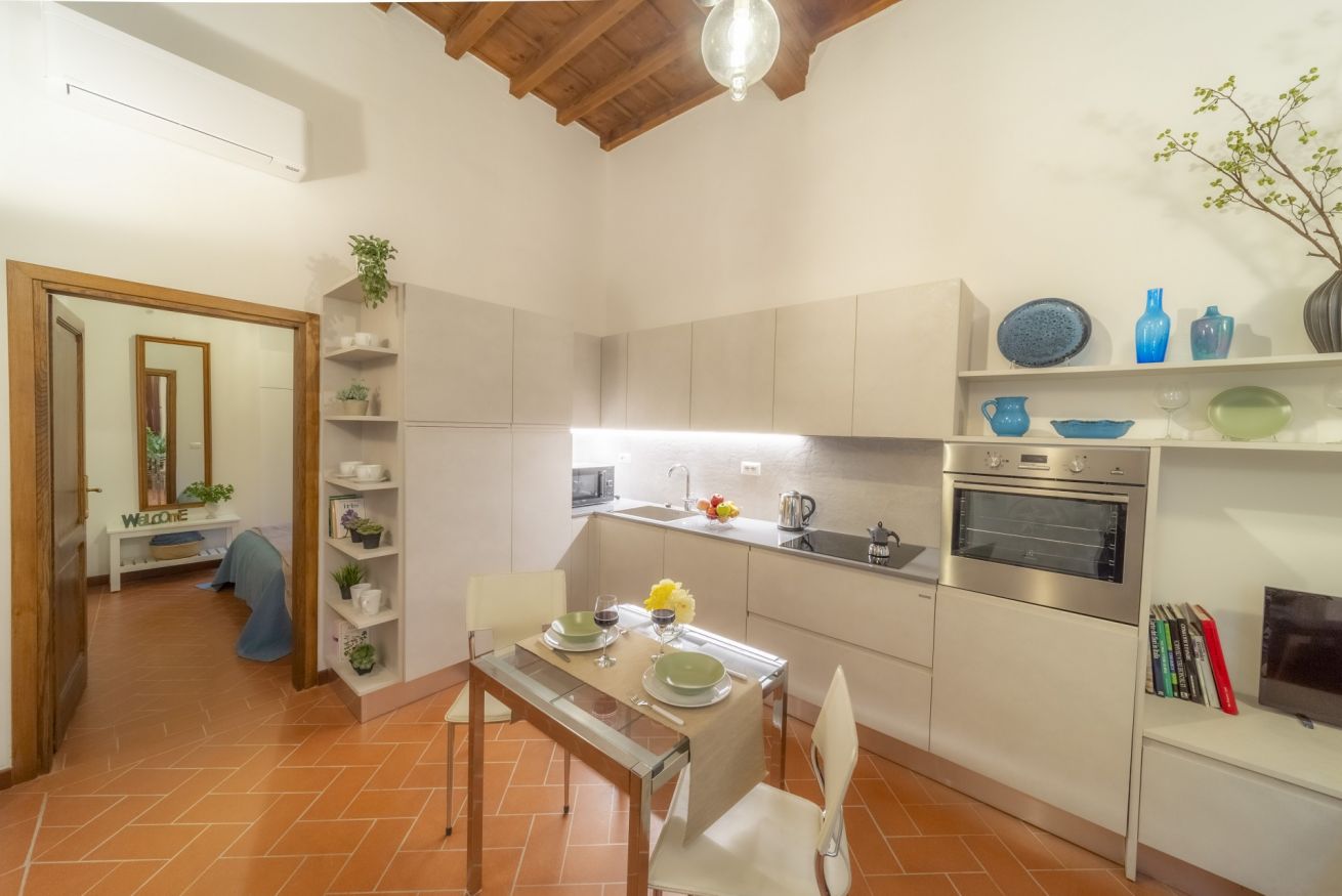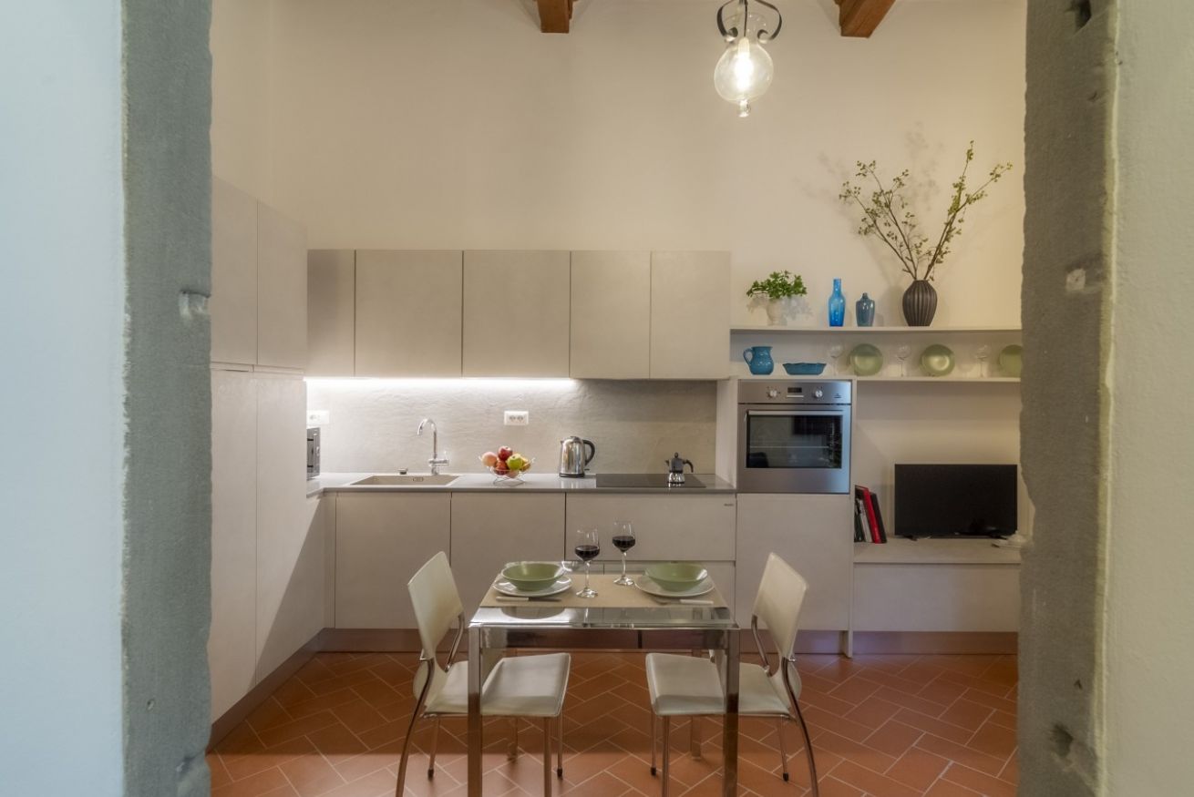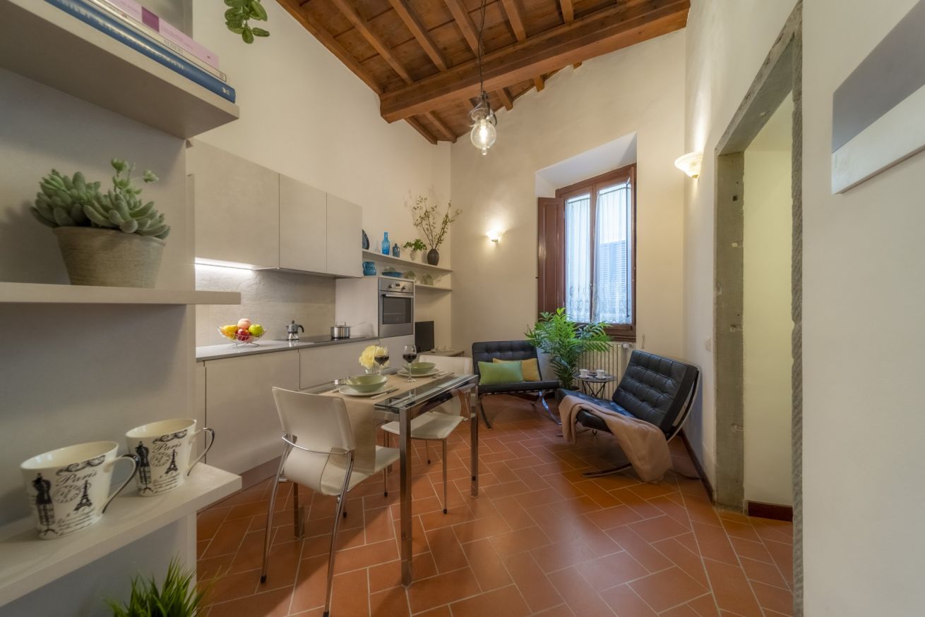 The apartment is located in Piazza del Mercato Centrale, one of the most lively Florence neighborhoods. The apartment is intimate, tidy and furnished with design furniture, and even if it's in a very central area it's very silent. Located on the first floor of an old historical Florentine building, it has a small entrance with a writing desk, a well furnished kitchen with a right next to living room, a matrimonial bedroom and a bathroom.