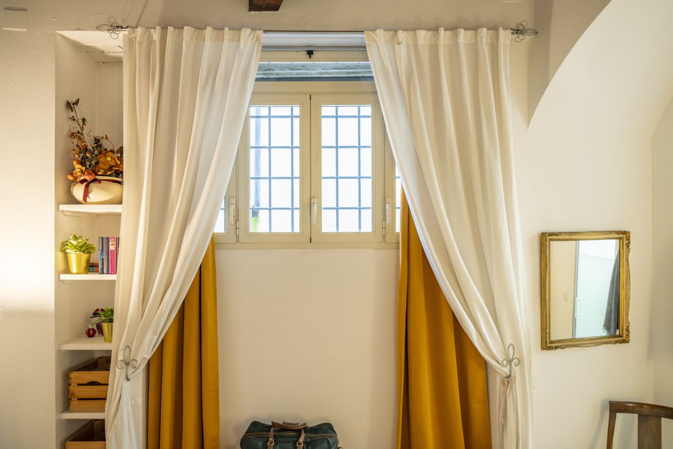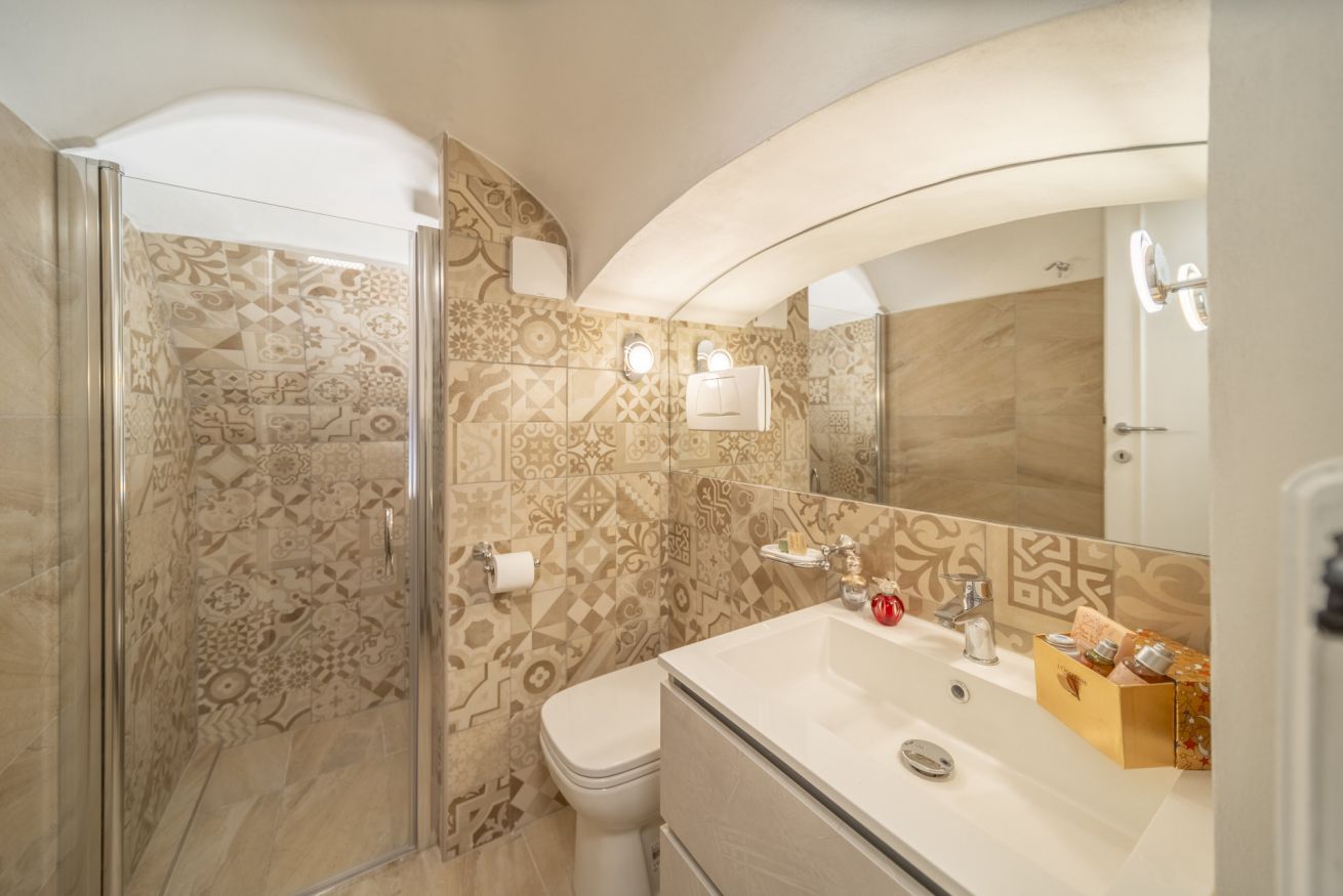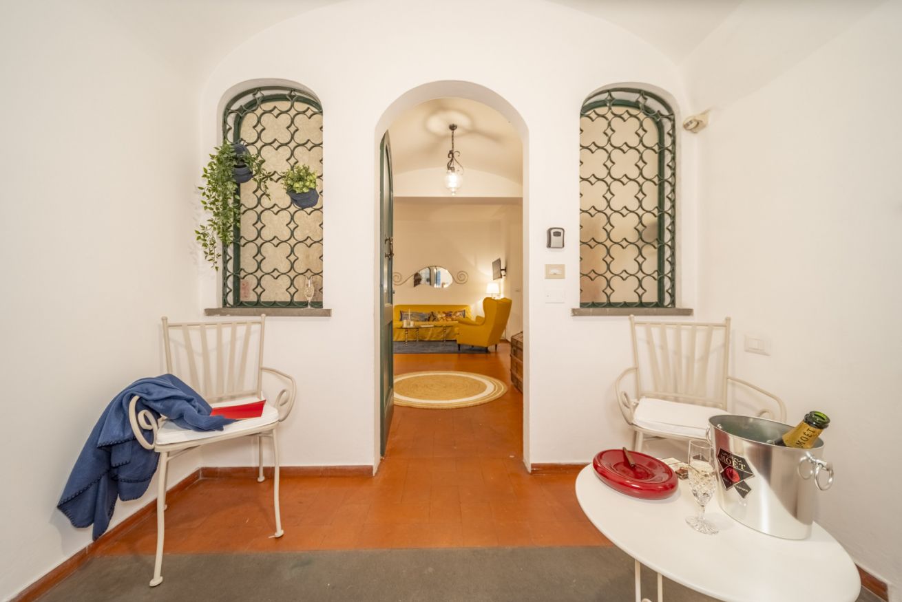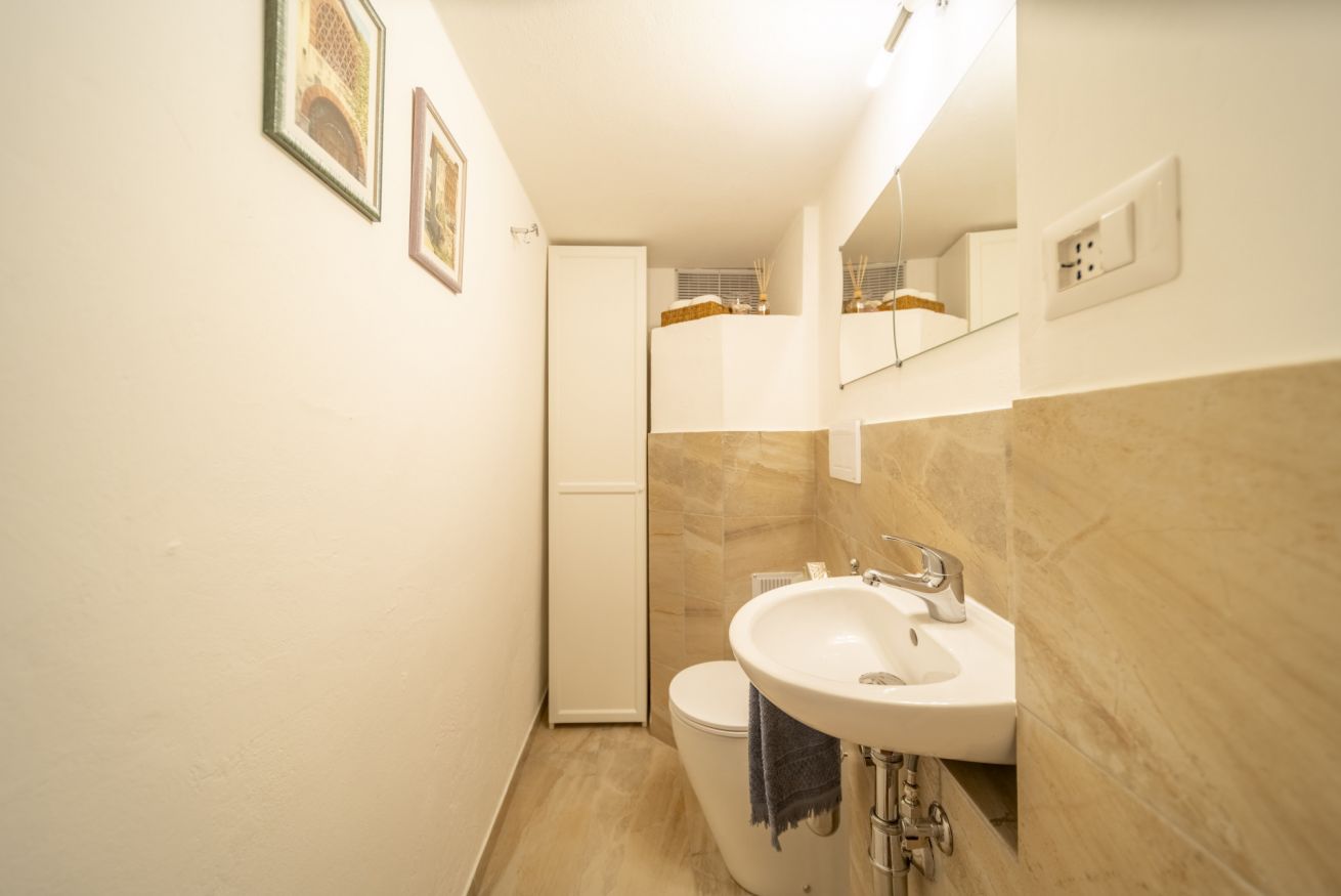 In questo appartamento spazioso e curato vi accoglierà subito un comodo soggiorno, arredato con toni caldi che completano il pavimento in cotto, mobili antichi e oggetti di design unici: qui potrete rilassarvi nel salottino dopo una lunga giornata di esplorazione, o concedervi una cena tranquilla nella zona pranzo. Subito accanto troverete la cucina, moderna e completamente accessoriata, e la splendida camera da letto, con il soffitto di travi a vista e il comodissimo letto matrimoniale, oltre ad una doccia aggiuntiva. A vostra disposizione, anche un delizioso bagno appena rinnovato e un bagnetto di servizio.