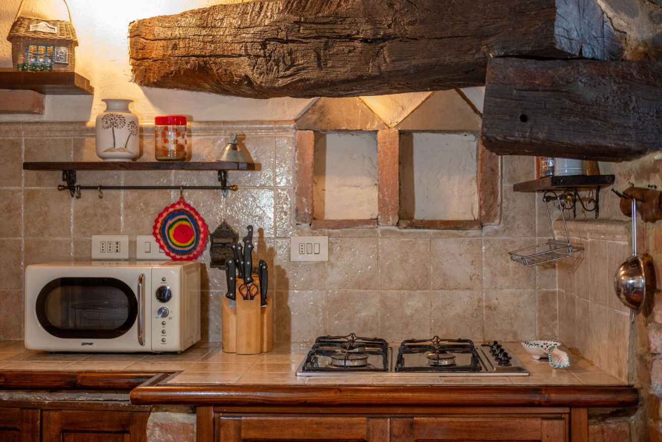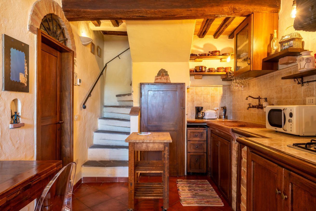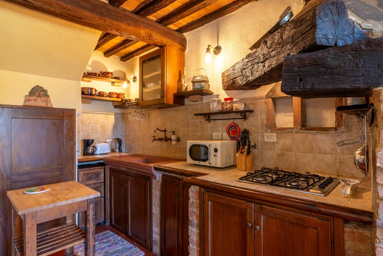 The accommodation has a cozy double bedroom, with a sofa bed and the option to add a single bed for children. The interiors, with exposed wooden beams and antique furniture, are decorated with unique pieces collected over time by the owners, from markets and travels, giving the house a special character. The fully equipped kitchen is the heart of the home, perfect for cooking together and experiencing the flavors of Tuscan cuisine in the warm atmosphere of a place full of life and love.