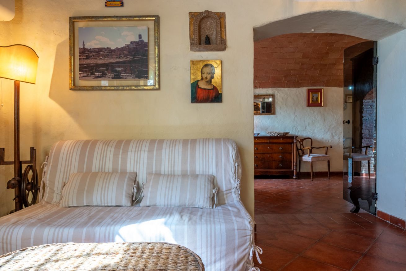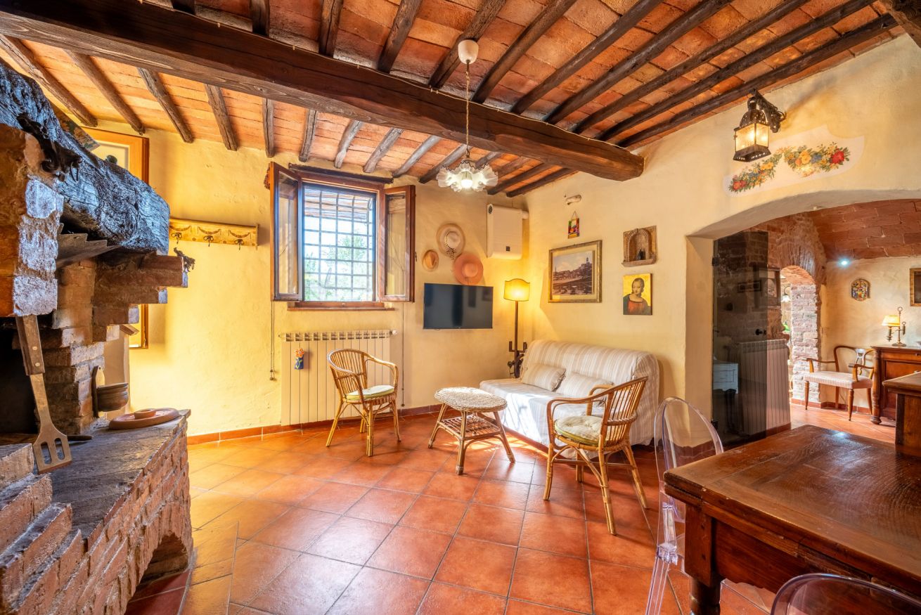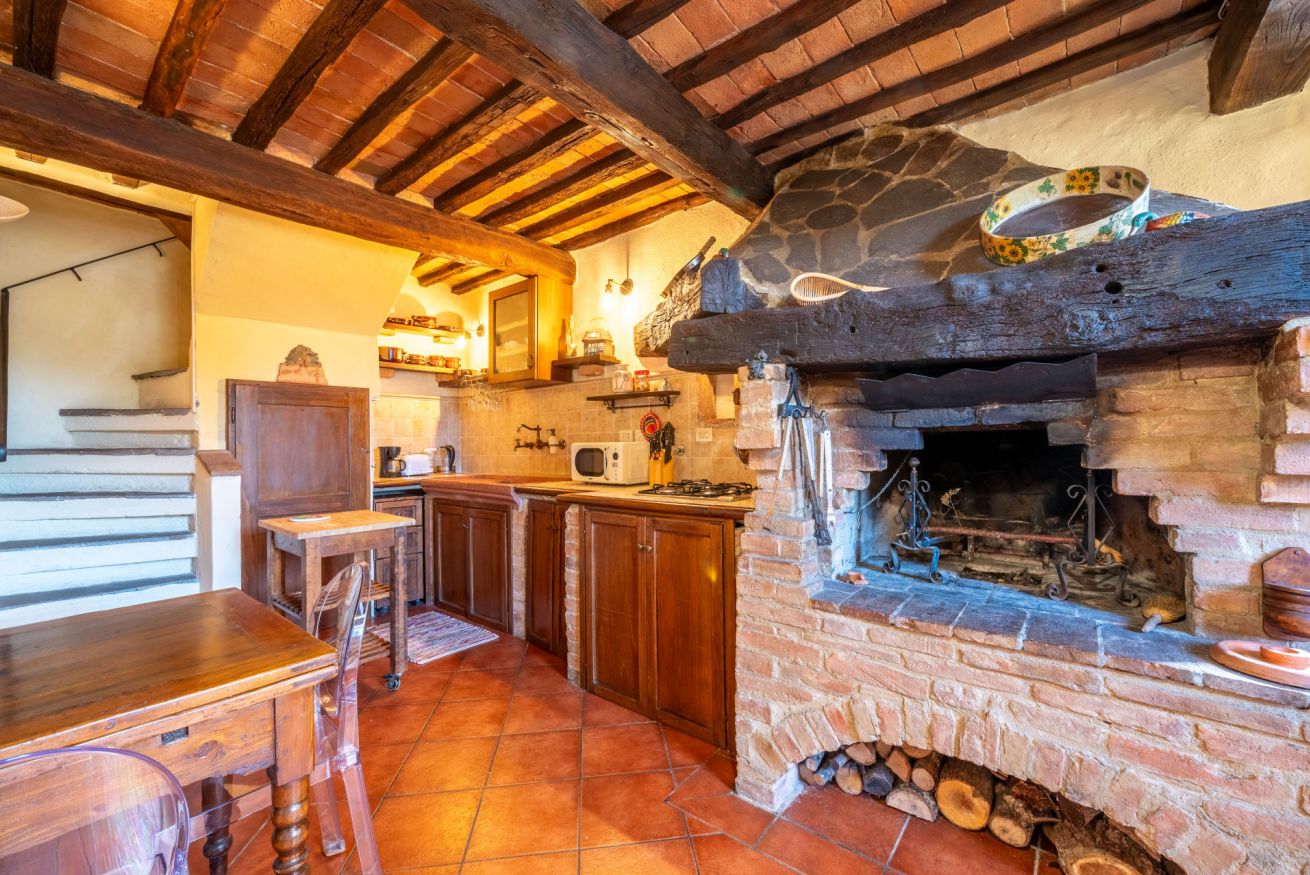 The accommodation has a cozy double bedroom, with a sofa bed and the option to add a single bed for children. The interiors, with exposed wooden beams and antique furniture, are decorated with unique pieces collected over time by the owners, from markets and travels, giving the house a special character. The fully equipped kitchen is the heart of the home, perfect for cooking together and experiencing the flavors of Tuscan cuisine in the warm atmosphere of a place full of life and love.