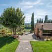 At the center of the estate, there is a large swimming pool, perfect for cooling off in summer, relaxing at sunset, or enjoying a quiet evening under the stars, surrounded by olive trees, woods, and vineyards. In the garden, there are small tables and shaded areas where you can have breakfast or lunch outside.