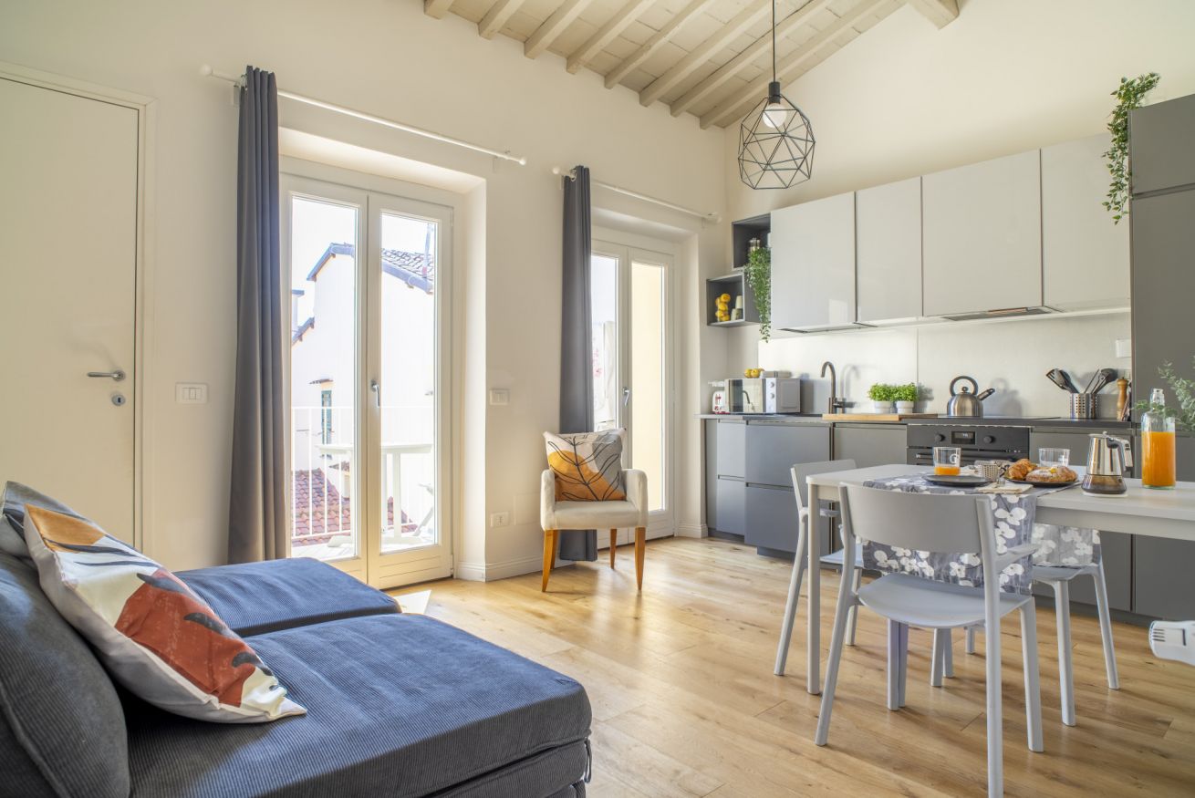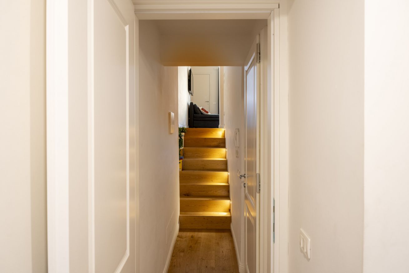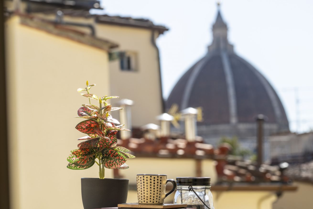 This two-level three-room apartment offers a modern and well-crafted interior, with a cozy double bedroom, two full bathrooms, and a bright living area with a comfortable sofa bed. The modern and fully equipped kitchen allows you to prepare delicious meals at home, to be enjoyed on the terraces that offer breathtaking views of Florence's rooftops, with the magnificent Brunelleschi's Dome in the background.