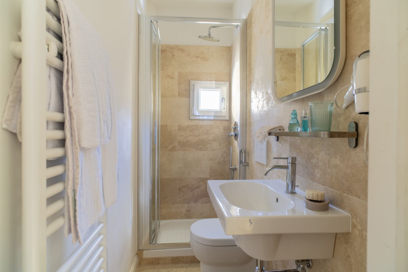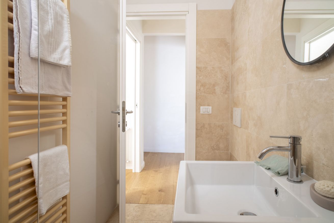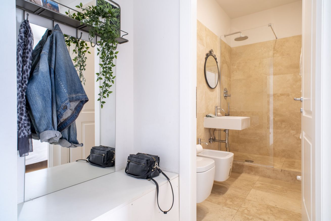 This two-level three-room apartment offers a modern and well-crafted interior, with a cozy double bedroom, two full bathrooms, and a bright living area with a comfortable sofa bed. The modern and fully equipped kitchen allows you to prepare delicious meals at home, to be enjoyed on the terraces that offer breathtaking views of Florence's rooftops, with the magnificent Brunelleschi's Dome in the background.