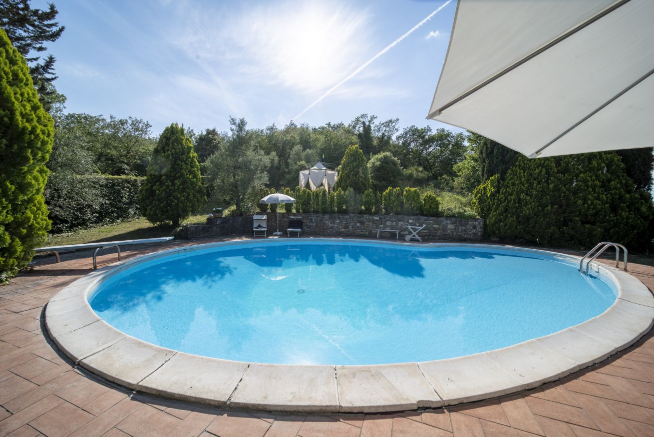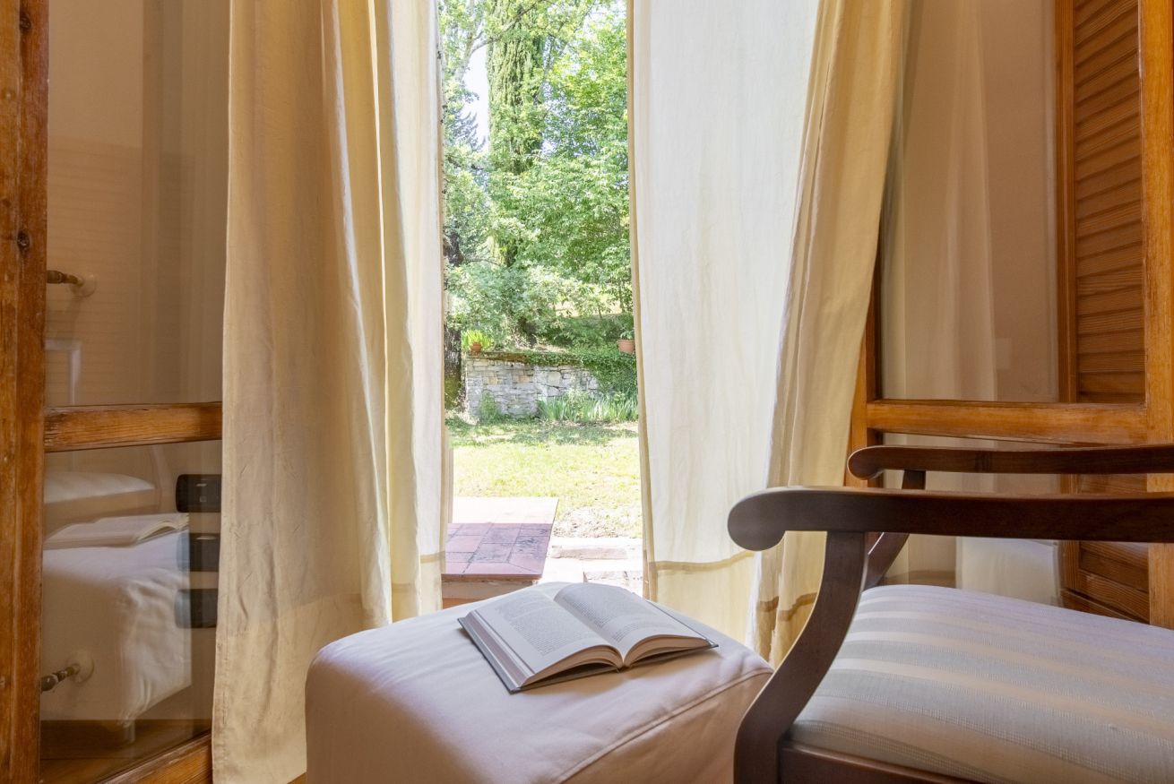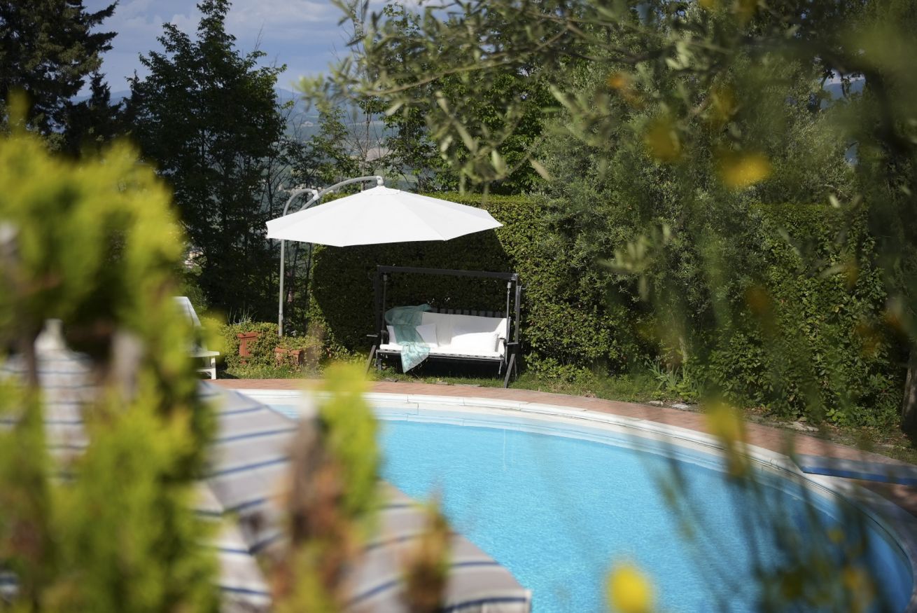 Surrounded by a private garden and a beautiful pool overlooking the splendid Sieve Valley, the Villa will be entirely at your disposal: enjoy every corner of the shaded and well-furnished garden, and relax in the bright living room furnished in a classic and elegant style, with the typical veranda windows opening onto the outdoor patio. For "homey" days, you will have the convenience of a modern and fully equipped kitchen to prepare your favorite dishes or try your hand at local cuisine. Upstairs, two elegant double bedrooms and a single room, also equipped with a comfortable study corner, will allow you to start and end each day in an extraordinary way, thanks to the well-maintained environments and the terraces overlooking the surrounding countryside.