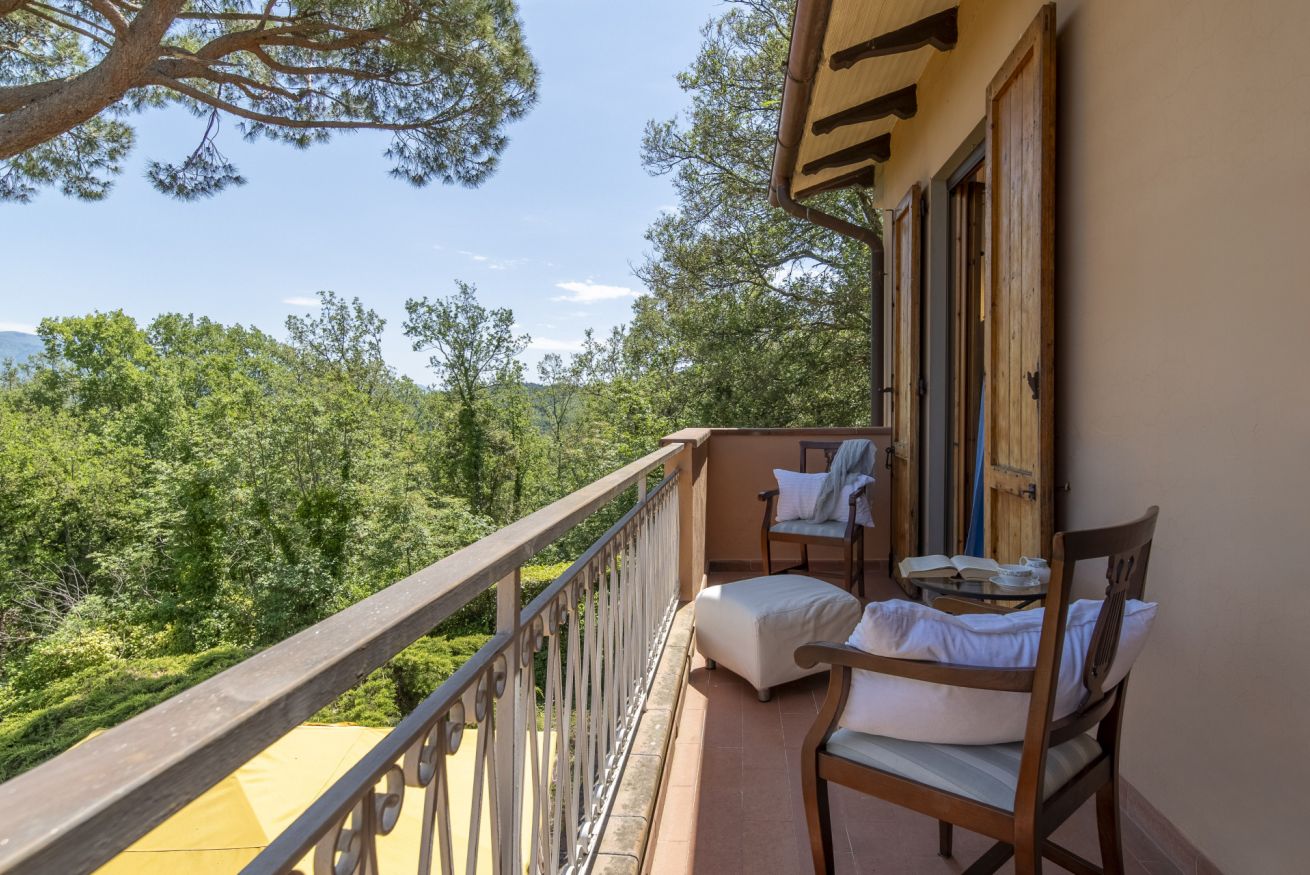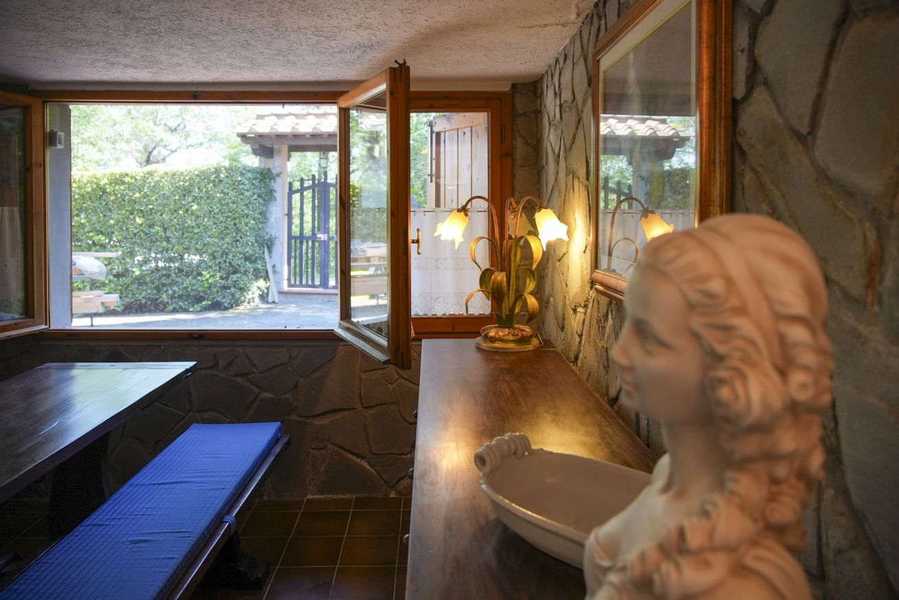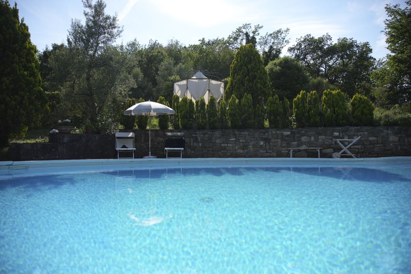 Surrounded by a private garden and a beautiful pool overlooking the splendid Sieve Valley, the Villa will be entirely at your disposal: enjoy every corner of the shaded and well-furnished garden, and relax in the bright living room furnished in a classic and elegant style, with the typical veranda windows opening onto the outdoor patio. For "homey" days, you will have the convenience of a modern and fully equipped kitchen to prepare your favorite dishes or try your hand at local cuisine. Upstairs, two elegant double bedrooms and a single room, also equipped with a comfortable study corner, will allow you to start and end each day in an extraordinary way, thanks to the well-maintained environments and the terraces overlooking the surrounding countryside.