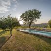 The pool, nestled in the heart of the estate, is an oasis of serenity. You can immerse yourself in its refreshing waters while admiring the undulating fields and vineyards that envelop the property. Breathtaking vistas of the Tuscan countryside stretch to the horizon, creating a magical and romantic ambiance.