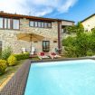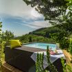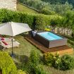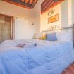 While going in, you’ll immediately find yourselves in the living room, where the extendable wooden table can sit down ten dinner guests. The kitchen, close by, is very spacious and well equipped for every need, also with a wide table. Right outside on the porch and garden, there is a small coffee table perfect to have breakfast or a refreshment: it’s almost impossible to resist the view and the open fresh air. From the living room a wooden staircase leads up the the second floor, and the sleeping area. The first room is comprised of a double bed and a private bathroom, the second of a double bed, the third of a double bed, a single bed (with the possible addition of a camp bed in any room of your choosing) and of a private bathroom. There is also a fourth communal bathroom. The house has a private parking space, an external equipped area, with the dining table and an aboveground pool for your exclusive use.