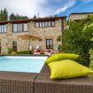 The house is a two floor house, comprised of a living room, kitchen, three bedrooms and four bathrooms for a total of 180 sq.m. The number of people that can host is seven, with the possible addition of an eighth. The rooms are spacious, luminous and capacious. Everything is furnished with simple modernity, but the wooden beam ceiling, the terracotta tile floor and some of the stone walls have been left as they are as to keep the typical traits of the old Tuscan homes, that were and are still built this way.