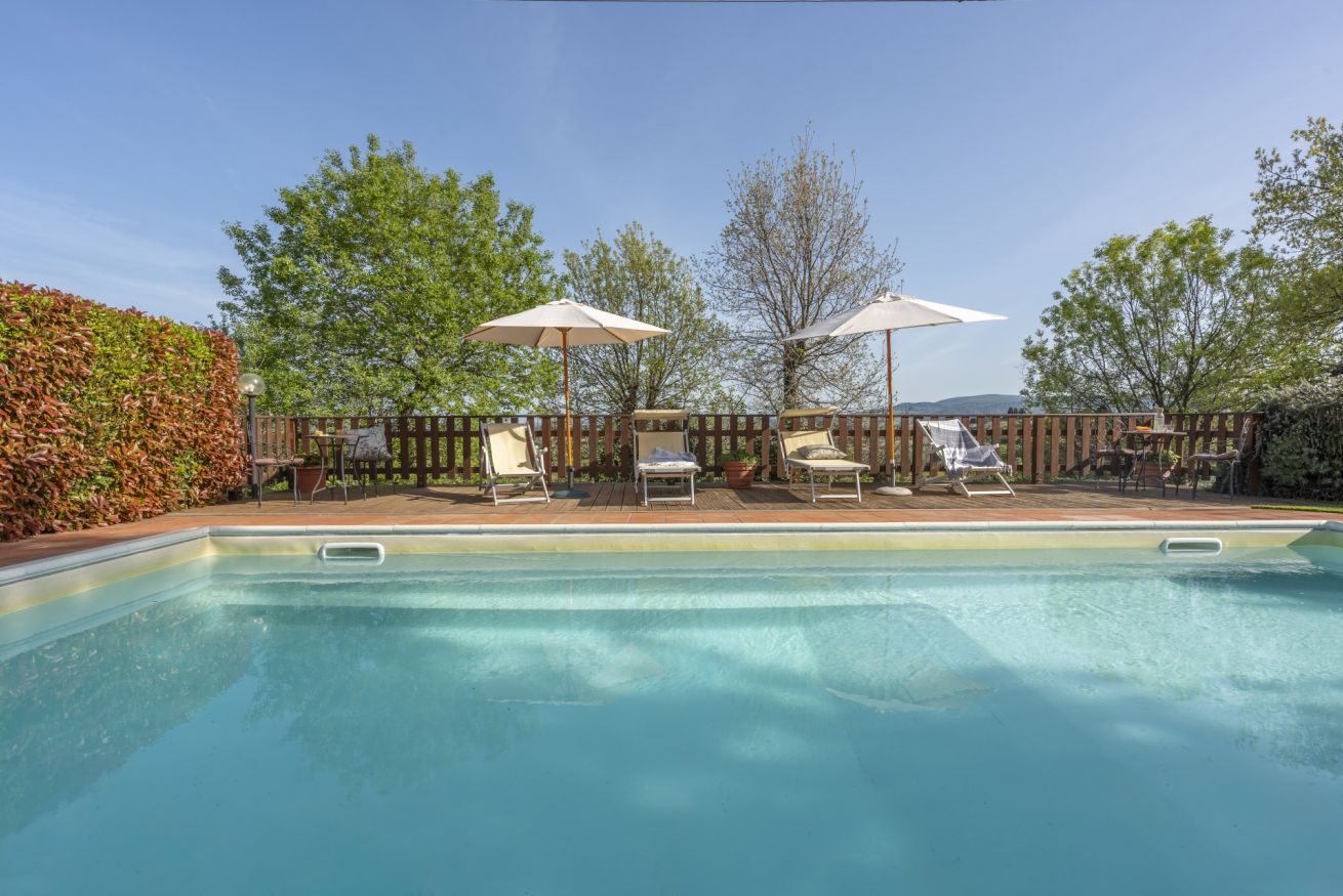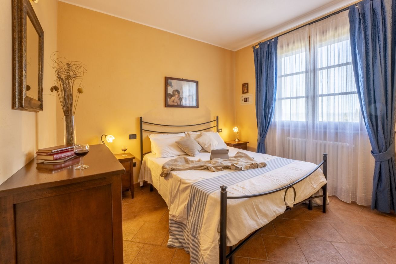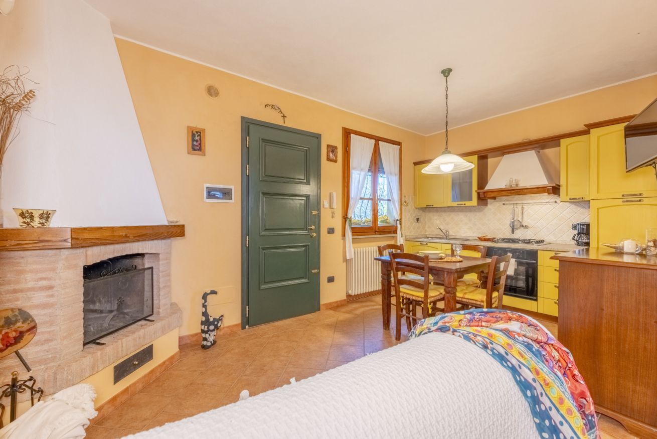 The apartment, with a separate entrance but a shared garden and pool with the rest of the house, will be at your disposal with a bright double bedroom equipped with all comforts and a well-equipped bathroom, welcoming you among walls with warm tones and precious details typical of ancient Tuscan farmhouses, with terracotta floors and exposed brick arches. The garden will allow you to spend warm summer evenings dining on the private outdoor veranda, to have fun and refresh yourself with the splendid pool, to relax on the hammock in the shade of ancient trees listening to the sound of cicadas, all in the beautiful setting of the Tuscan countryside.